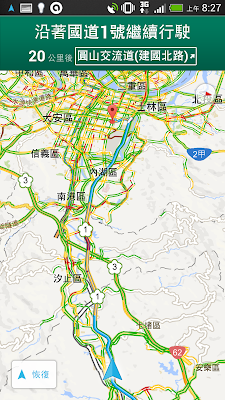 經過早上的簡單測試,目前支援在導航前依據交通流量提供不同路線選擇,會有顏色區別不同路線的交通順暢度,選擇路線後就可以開始語音導航,會在快要到達轉彎前提供幾次的語音提示,語音播報口語很清楚。