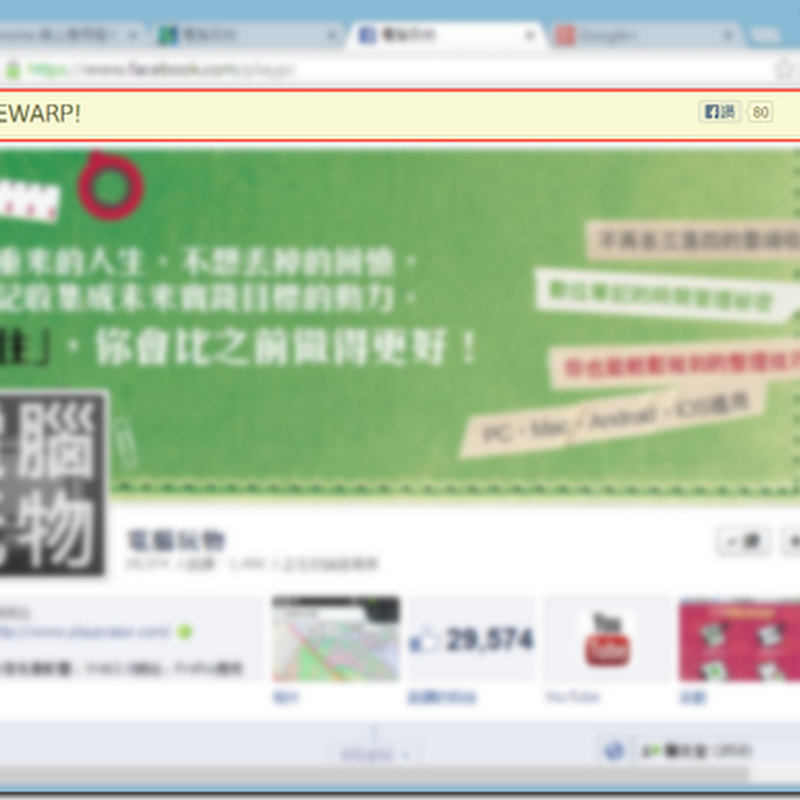 這就是今天要推薦的 Google Chrome 外掛:「 Time Warp 」,安裝這款擴充套件後可以預先指定任何一個網站是要「重新導向」、「發出警語」還是啟動「使用時間計時器」,不一定只能強制關閉,可以用三種不同的傳送門來引導我合理的瀏覽這些容易導致分心的網站。