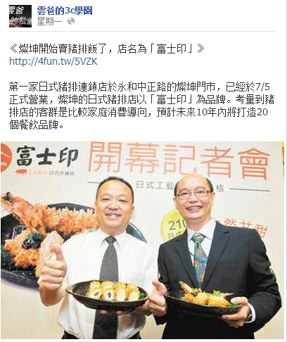 前天才看到電視新聞報導燦坤開了豬排店,查了一下發現就在我家附近,而且已經在7/5就開幕了