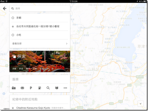 把你的 iOS 上的 Google 地圖更新到 2.0 版,開啟後,終於可以在 iPad 上看到高解析、全螢幕的舒適地圖瀏覽畫面。而使用方式基本上都和網頁版一致。