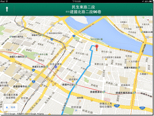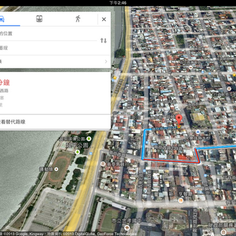 也是上禮拜才剛剛開放的 Google 地圖衛星導航台灣版,當然也可以在 iPad 上使用,在這個導航系統中最令人激賞的特色是「交通流量」的判斷。