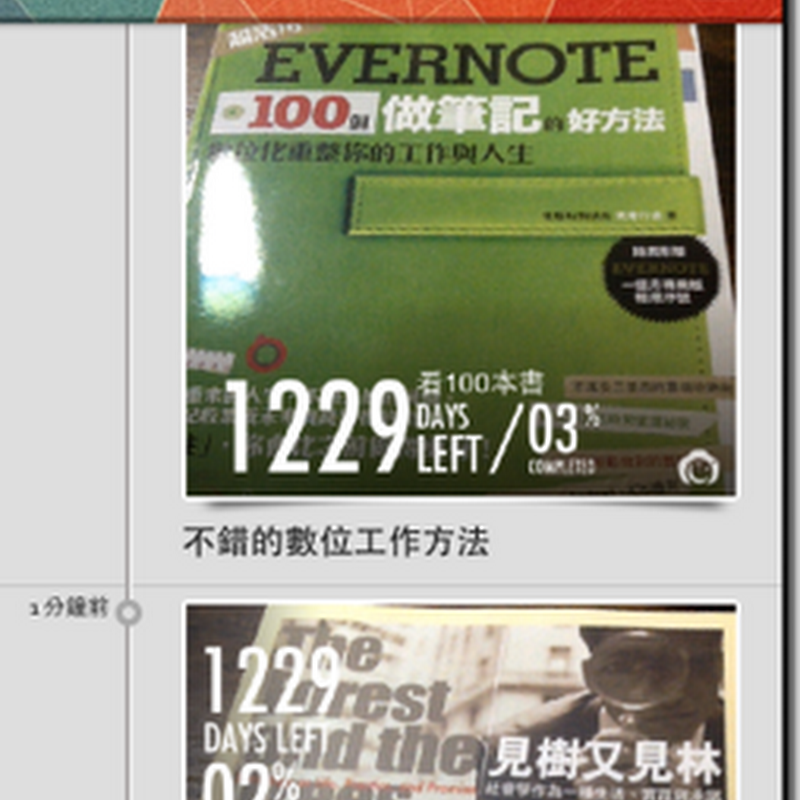 - 讀書計畫:拍照記錄讀過的每一本書。