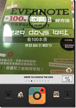 點進某則目標後按下「 Dreamsmile 」的拍照按鈕,就能進行夢想打卡,這時候「 Dreamsmile 」提供了多種「打卡文字相框」,讓你直接把夢想的達成進度資訊套用在照片上。