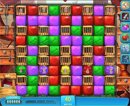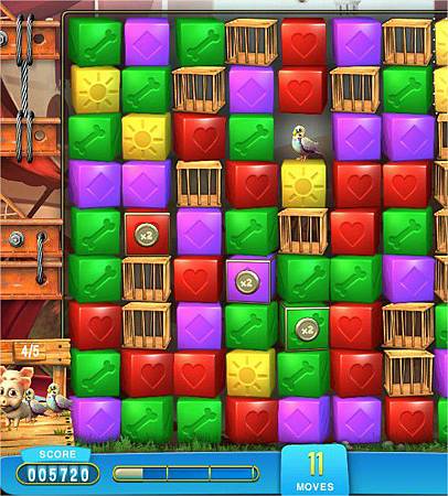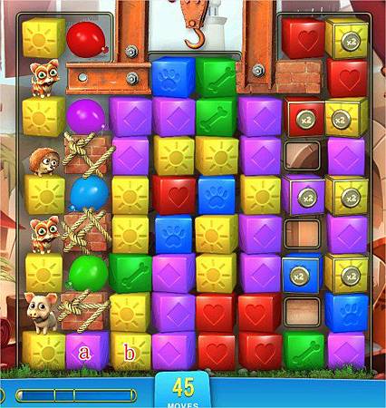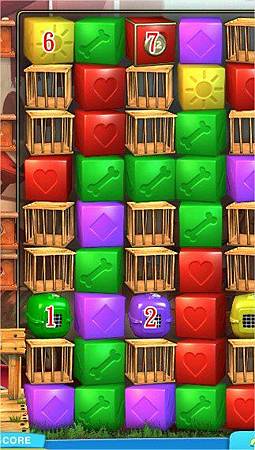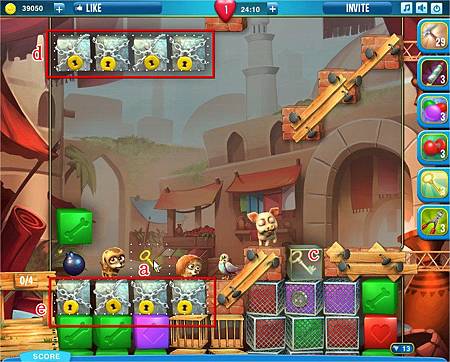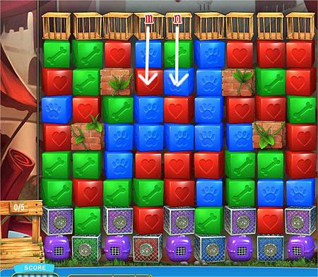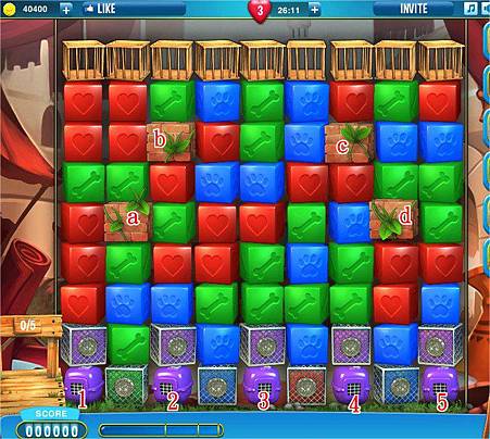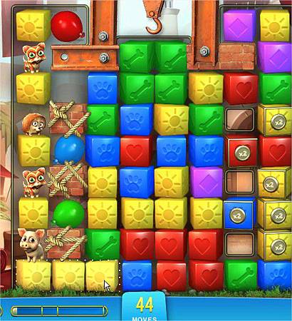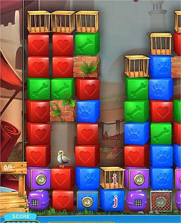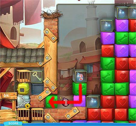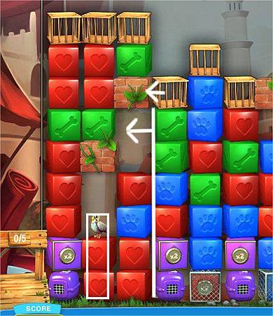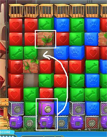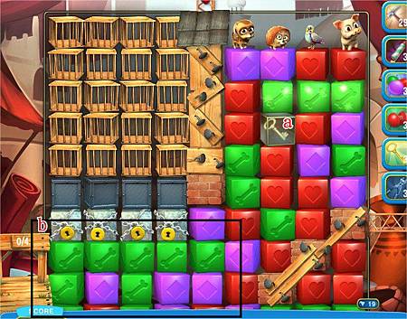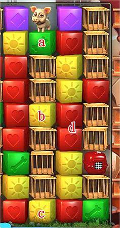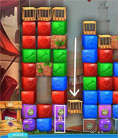 把寵物弄上去後,寵物底下的那塊積木(a),得等它底下的籠子全都消除了之後,才能消這塊,