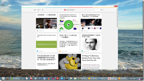 例如我常用的雲端服務 Pocket,這是一個稍後閱讀服務,當打開其 App 時會開啟一個獨立的閱讀視窗,可以讓我在桌面上自由移動、展開最舒適的角度,並且所有稍後閱讀文章都會「離線下載」,讓我隨時可以閱讀。(圖中範例為:Pocket Read it later 稍後閱讀同步、離線、免費行動口袋)
