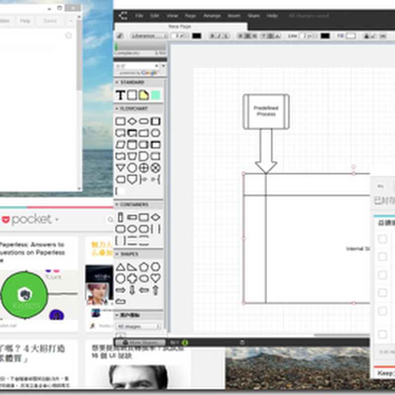「 Chrome Packaged Apps 」當然也可以展開視窗,用全螢幕的方式進行電腦上的作業,像是畫個圖表也不賴,而你在這樣的軟體視窗裡,基本上不會覺得自己是在使用一個網頁工具,就像操作一個真正的軟體一樣。(範例:LucidChart)