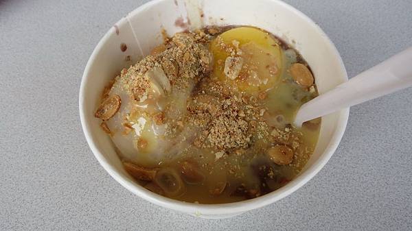 冰有點像是傳統「叭噗」(冰淇淋球)的冰,加上紅豆、花豆、綠豆、花生、花生粉,