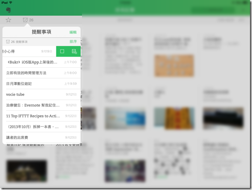 從所有筆記清單中,只要將筆記方塊往左滑動,就能顯現出三種主要排程功能: