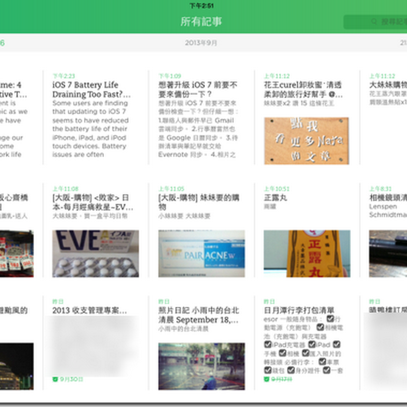 而且這樣的操作方式搭配第一點,讓我們把注意力完全集中在單一的頁面上,也就是:「所有記事」這一頁。