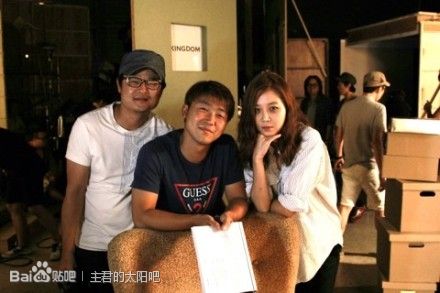 布利和工作人員合照1P,好重的黑眼圈呀~